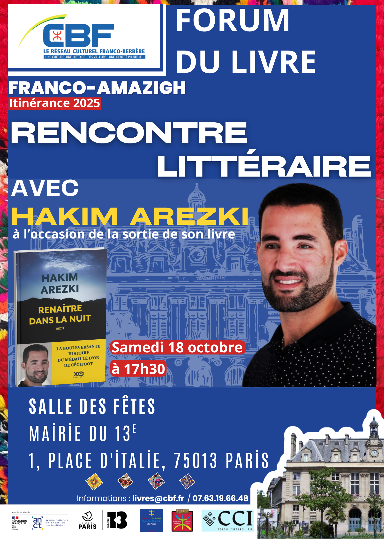 Dans le cadre du Forum du Livre Franco-Amazigh – Itinérance 2025, le Réseau Culturel, le Réseau Culturel Franco-Berbère (CBF) accueille une rencontre exceptionnelle avec Hakim Arezki, musicien, écrivain et champion paralympique, autour de son ouvrage Renaître dans la nuit.